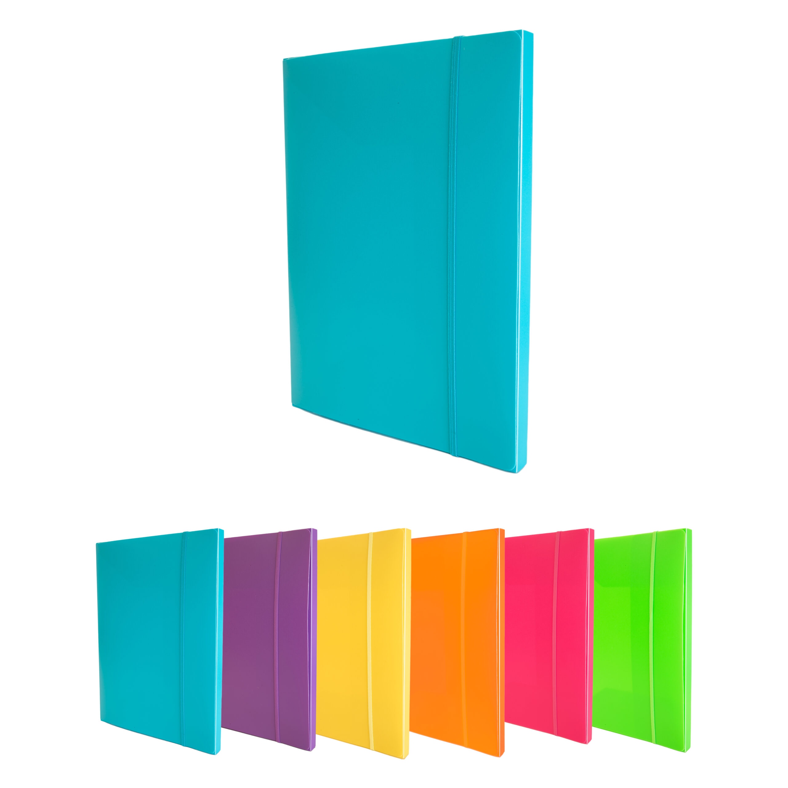 Cartella porta progetto con elastico in PP fluo, colori assortiti.