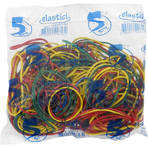 Spil – Elastici assortiti per diametro e colore in bustina da 100 grammi.