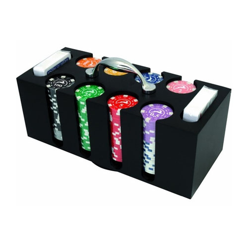 GETTONIERA IN LEGNO 200CHIPS CON 2 MAZZI TEXAS POKER MODIANO