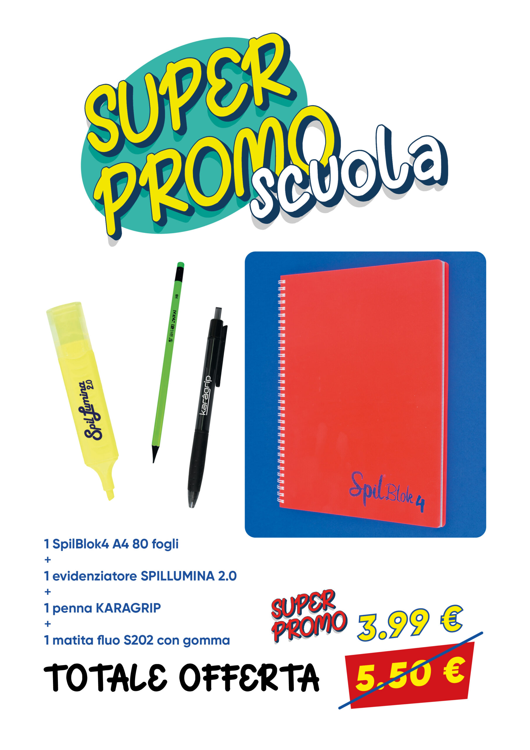 - 1 Evidenziatore Spillumina 2.0 (Colori: Giallo – Arancione – Azzurro – Lilla – Rosa – Verde)
