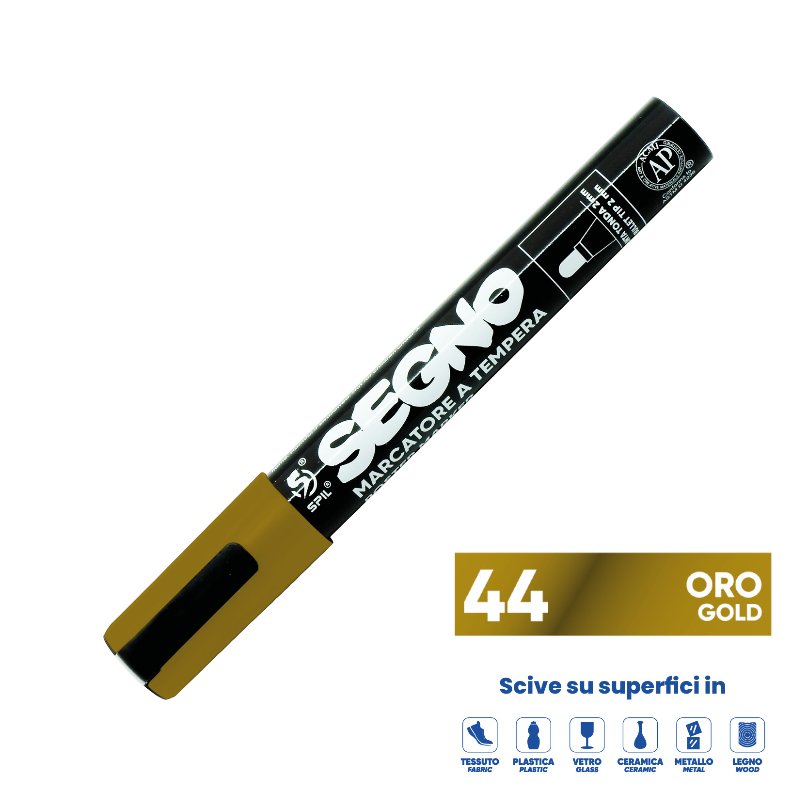 Spil – La punta media del Segno è la più apprezzata dai professionisti e dagli appassionati. Permette di tracciare un tratto netto e preciso, ma anche di realizzare le più belle colorazioni. Il Segno è adatto agli artisti e ai professionisti della creazione, come architetti e agenzie; agli appassionati di hobby creativi e di home decor, così come agli appassionati della personalizzazione, come surfer e skater. Grazie alla sua facilità d’uso, è anche uno strumento ideale per permettere ai principianti di esprimere liberamente tutta la loro creatività. Scrive su molte superfici: Tessuto – Plastica – Vetro – Ceramica – Metallo – Legno. 24 colori disponibili: Giallo – Arancio chiaro – Arancio – Rosa – Magenta chiaro – Rosso vino – Violetto – Viola – Celeste – Azzurro – Verde chiaro – Marrone chiaro – Terra di Siena – Grigio chiaro – Grigio Fumo – Argento – Rosso Metal – Verde Metal – Bianco – Nero – Rosso – Blu – Verde – Oro.