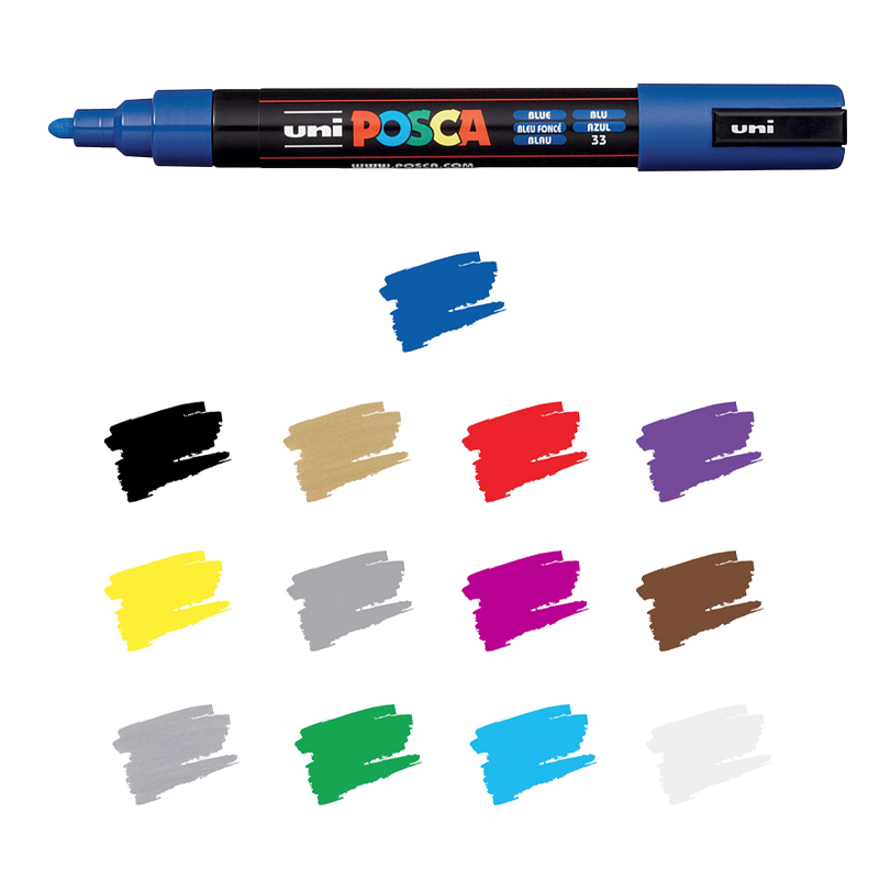 Marcatore punta tonda media 2.5 mm, ideale per decorare e dipingere tutte le superfici. 24 colori disponibili: Giallo – Arancio chiaro – Arancio – Rosa – Magenta chiaro – Rosso vino – Violetto – Viola – Celeste – Azzurro – Verde chiaro – Marrone chiaro – Terra di Siena – Grigio chiaro – Grigio Fumo – Argento – Rosso Metal – Verde Metal – Bianco – Nero – Rosso – Blu – Verde – Oro.