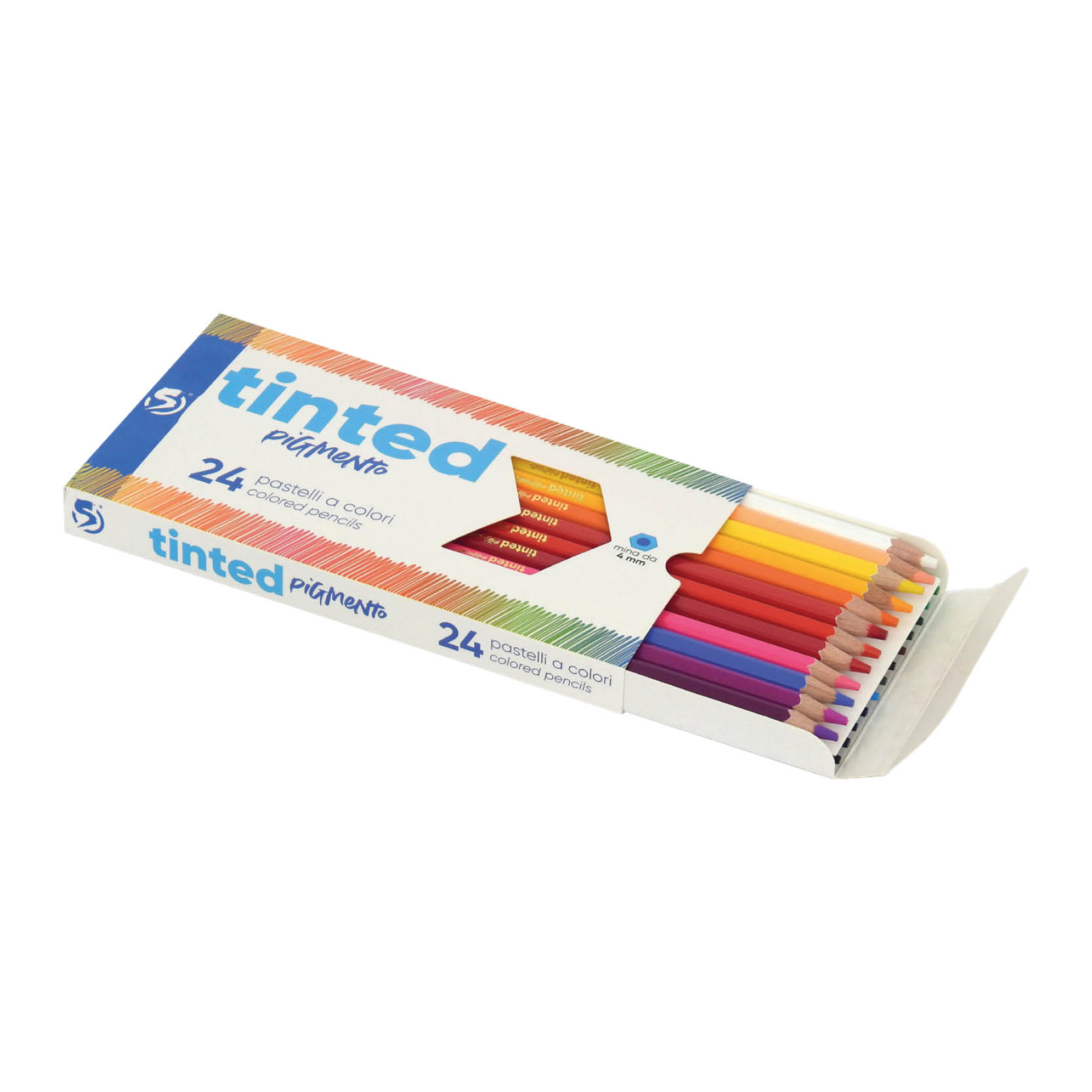 Pastelli a colori, mina da 4 mm di altissima qualità per una colorazione brillante. Facili da temperare. Confezioni da 12, 18, 24 e 36 pezzi