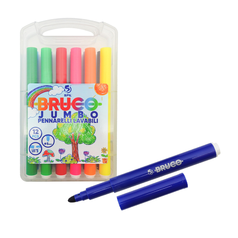 SPIL – Pennarelli Bruco Jumbo ad inchiostro lavabile a base d’acqua, punta 5 mm, in scatola da 12 pezzi in PPL infrangibile, prodotto atossico, scrittura fluida.