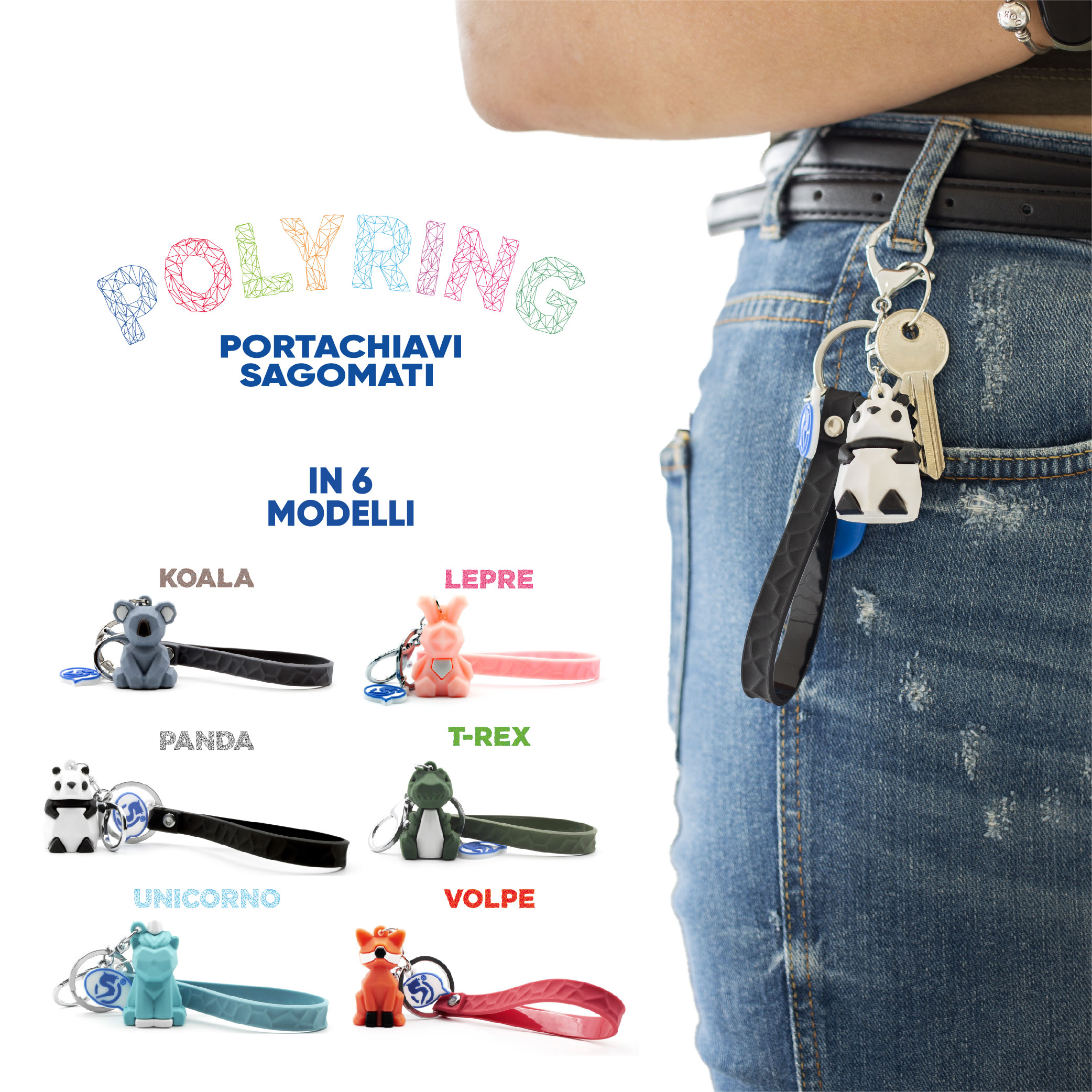 Rendi il tuo zaino e le tue chiavi COOL con i fantastici portachiavi POLYRING. Portachiavi sagomati in 3D. 6 Animaletti tutti da collezionare: Koala – Lepre – Panda – Dinosauro – Unicorno – Volpe.
