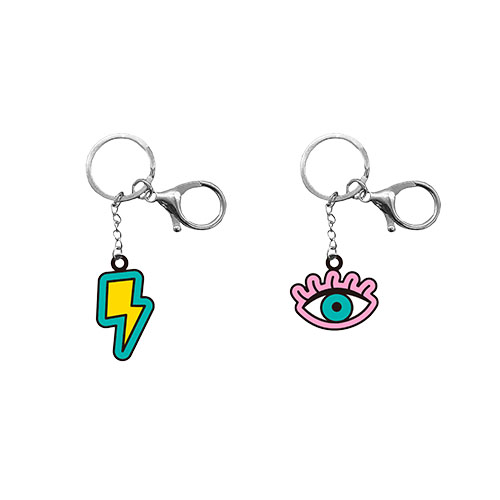 SPIL – Portachiavi con ciondolo in metallo. Due modelli Girl (Occhio) e Boy (Fulmine).