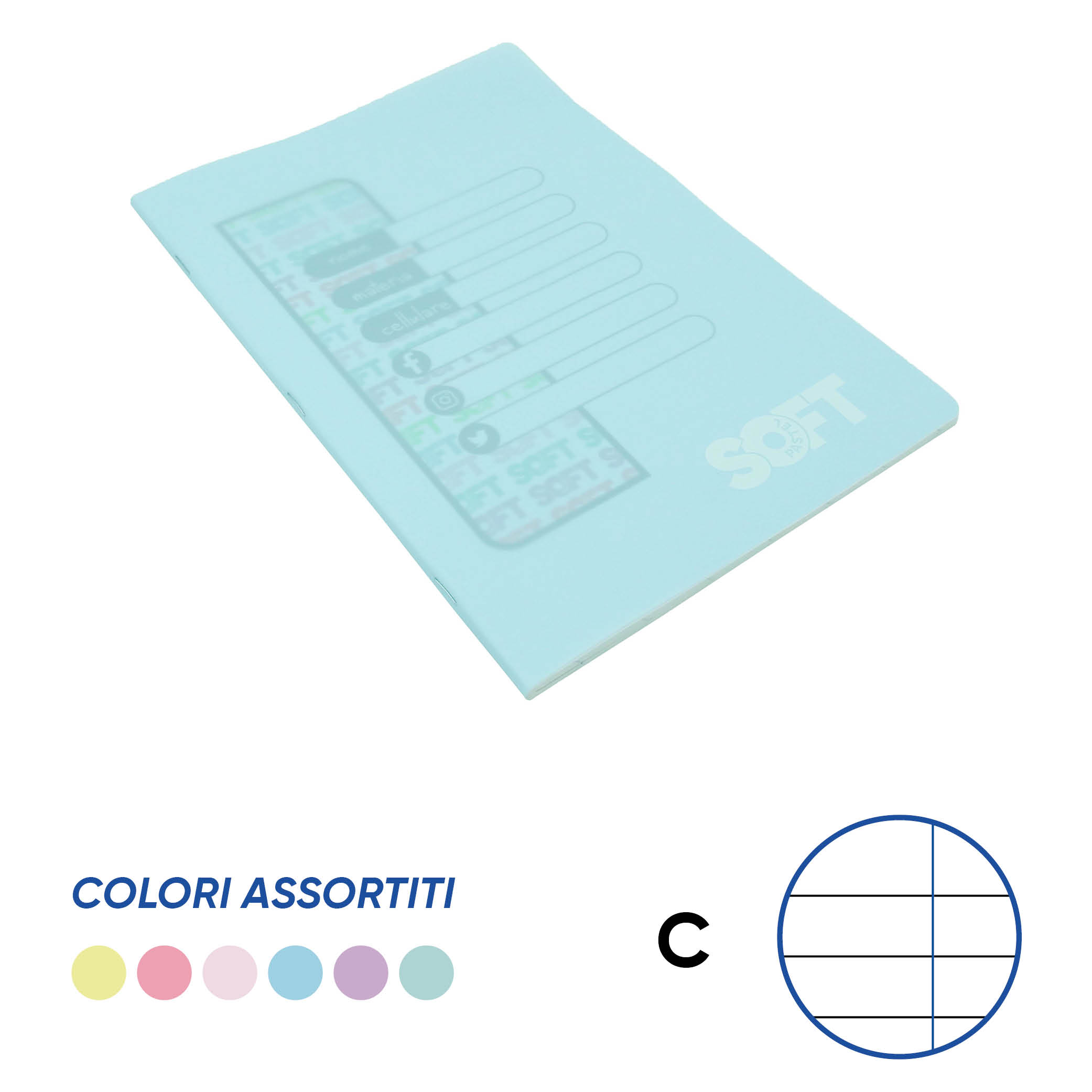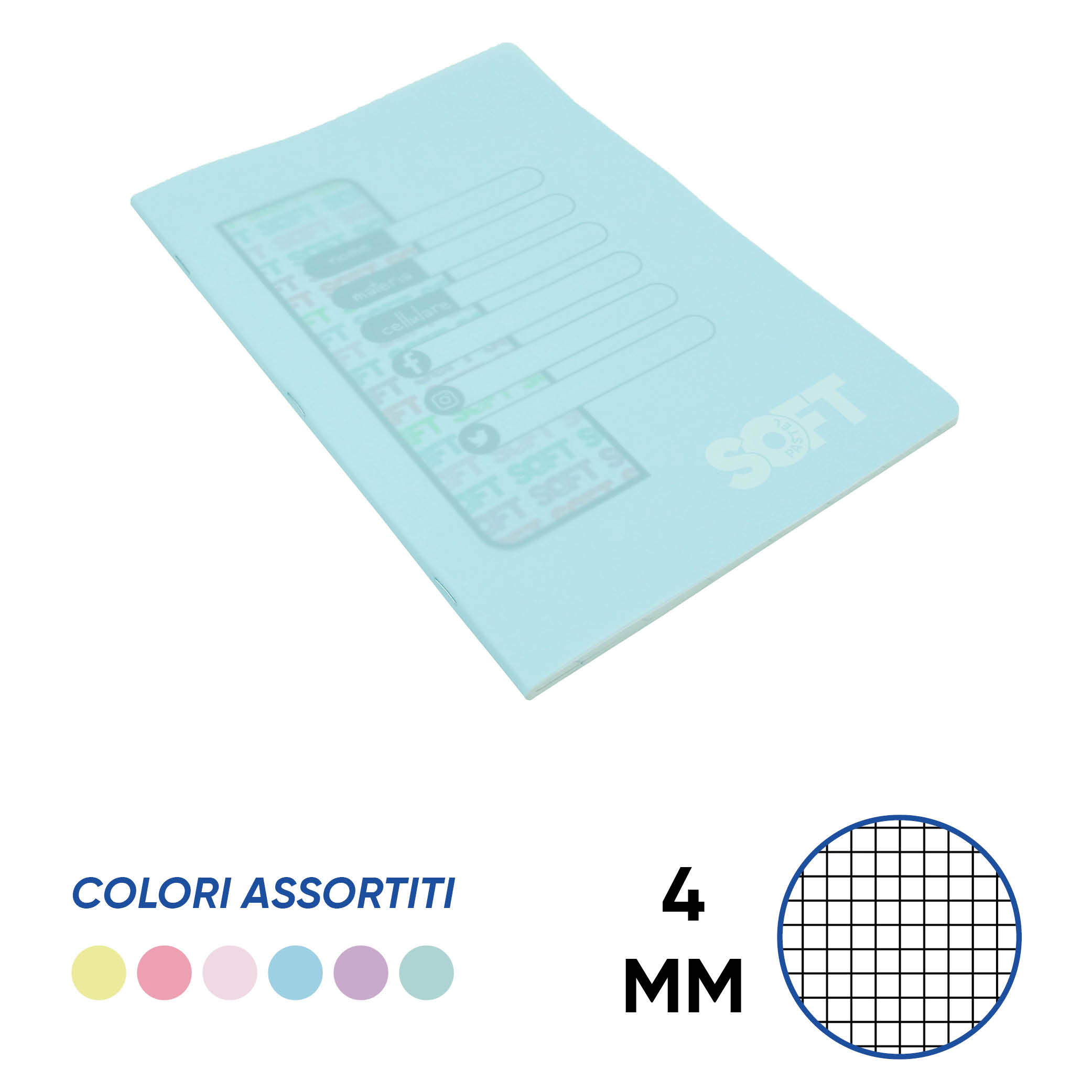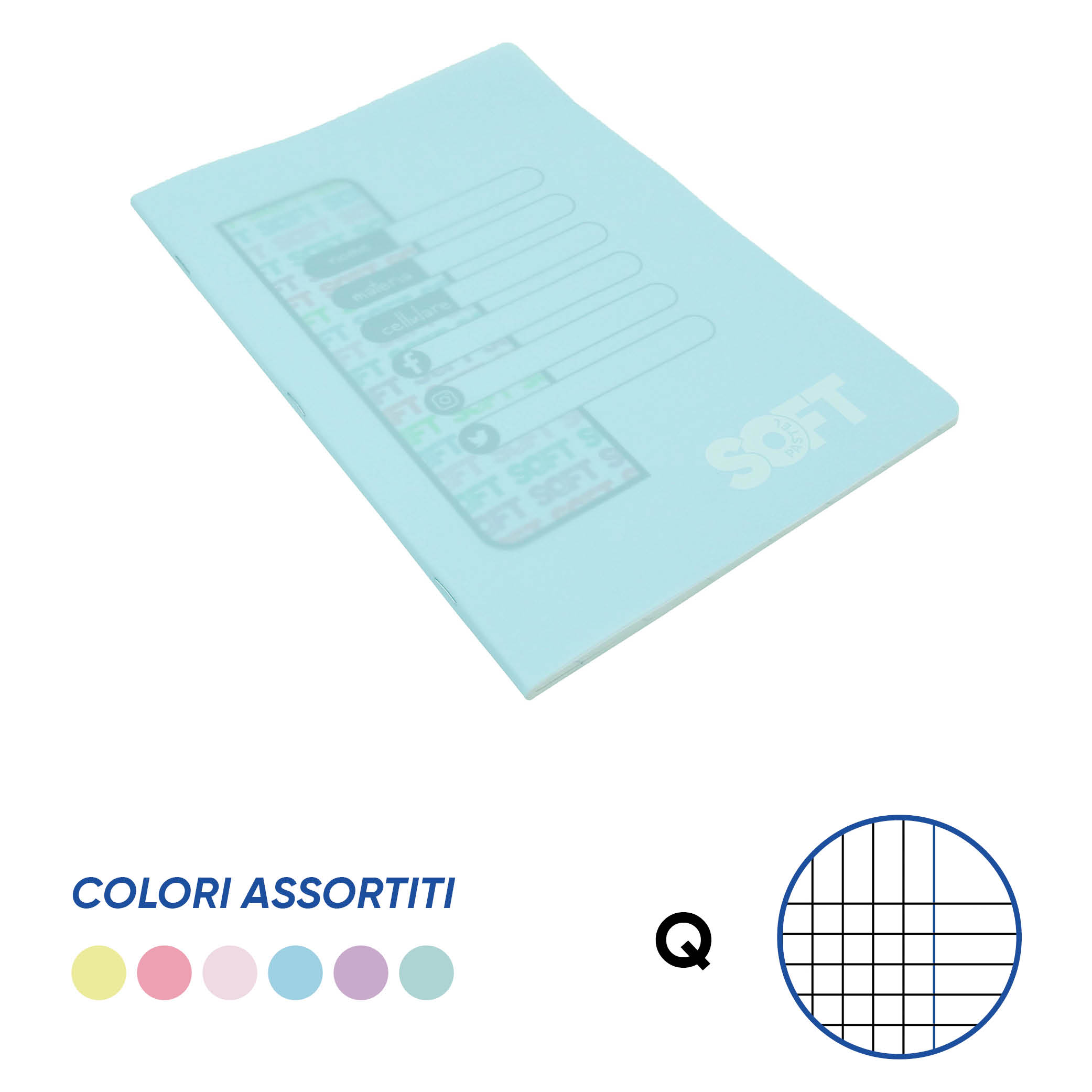 QUADERNO A4 PASTEL SOFT 80 gr. COPERTINA IN PPL Conf. 10 pz