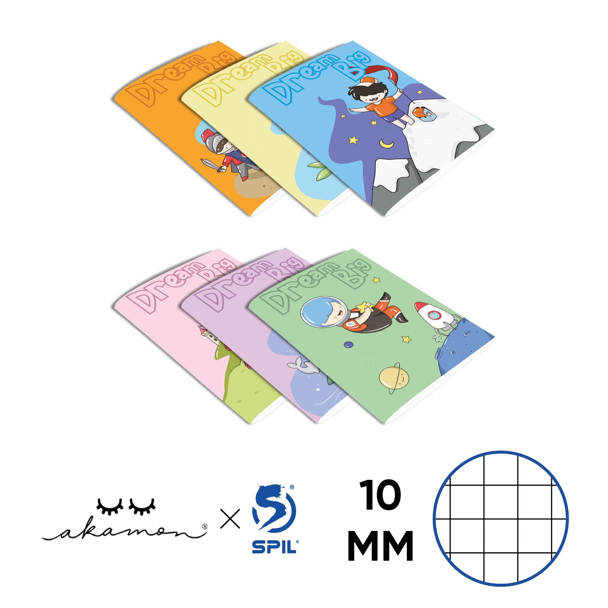 Quaderno Akamon x Spil – Dream Big – dimensioni A4 con carta 100gr. Ideale per bimbo e bimba. Rigature: 10mm – 5mm – 1R – A – B – C – Q